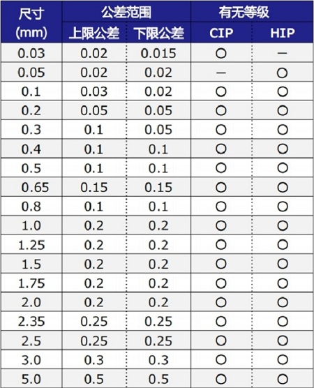 產品直徑范圍為0.03-5.0mm,且幾乎所有尺寸都具有HIP級別的(壓實化),用于研磨高硬質材料。